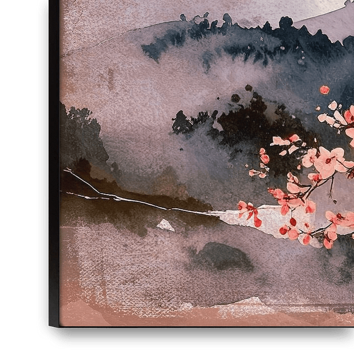 Bring the iconic beauty of the Far East into your home with this dreamy watercolour-style mountain landscape. This artwork captures the ultimate symbol of Japan: the majestic Mount Fuji, towering over a misty mountain landscape, flanked by an ornate cherry blossom (Sakura) in…