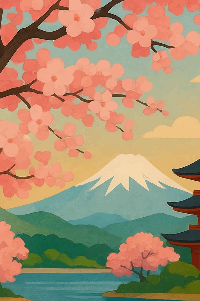 Japanese cherry blossom nature illustration.