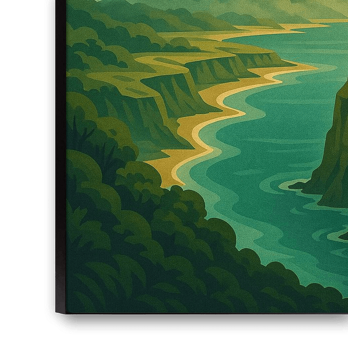 Displayed in a home, office, or relaxation space, this artwork brings a sense of peace, grounding, and natural elegance. It’s perfect for those who appreciate volcanic landscapes, scenic coastlines, or Korean destinations that blend adventure with serenity. Every detail — from the warm rays breaking through the sky to the gentle ripples of the water — invites the viewer to reconnect with nature and embrace the calming essence of Jeju Island.