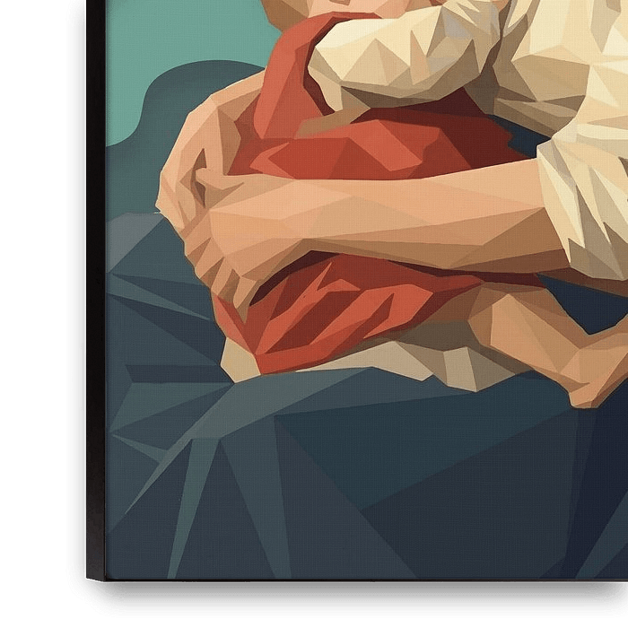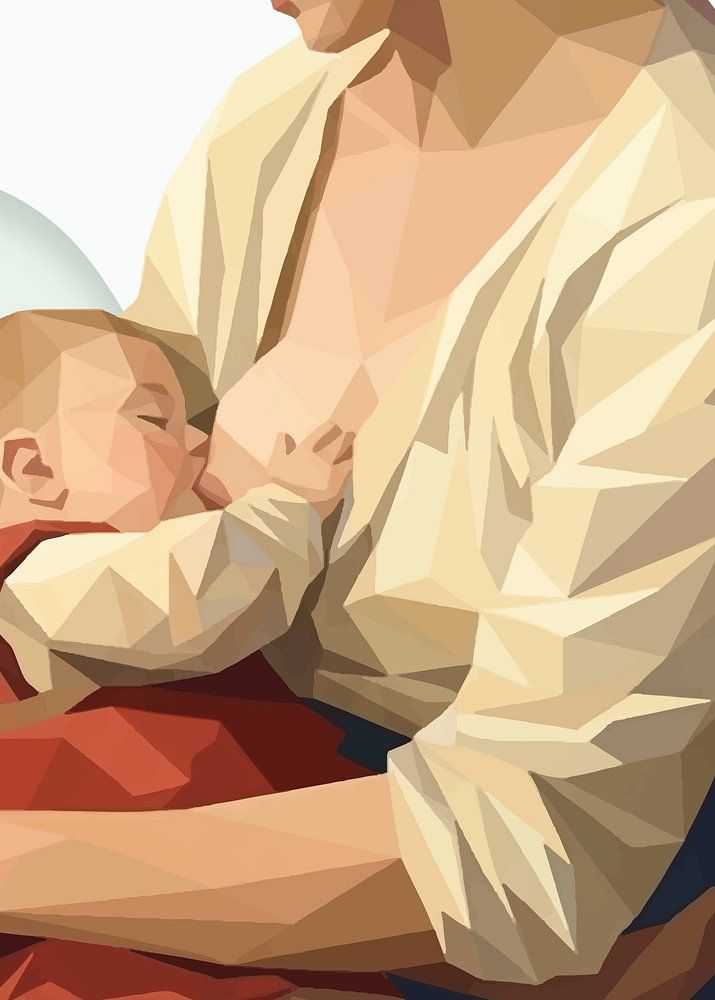 "Jeune Mère Allaitant Son Enfant" (style Low poly) inspiration from a painting by Jules Breton in 1873