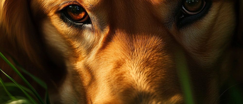 A gentle look from the greenery that captures the hidden curiosity and joie de vivre of a young dog. The warm, golden colour tones radiate cosiness and invite you to linger. Ideal for the living room, where it spreads joy and relaxation with every glance and warms the hearts of those who look at it.
