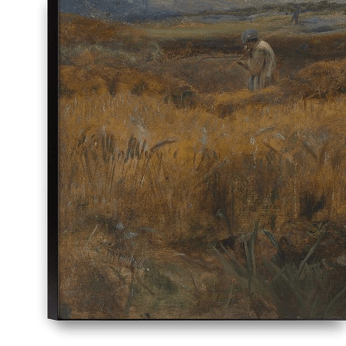 Buy John William Inchbold~Cornfield at sunset as a reproduction on canvas, ArtFrame, poster and wallpaper, printed on demand in high quality.