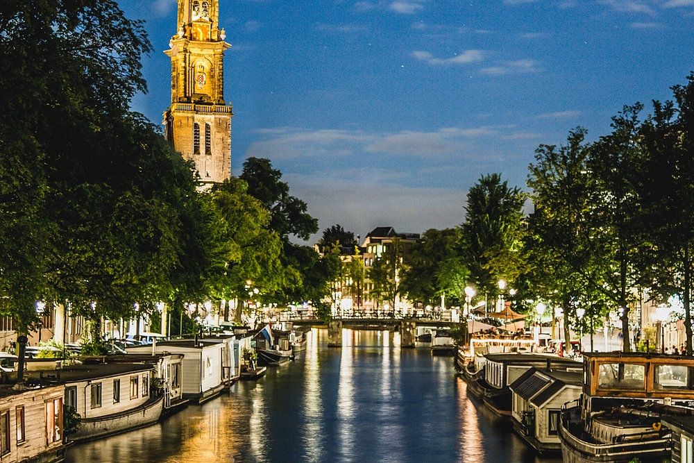Buy the photo Jordaan towards the Westerkerk "Evening) by Charles Poorter on canvas, ArtFrame, poster and wallpaper, printed on demand in high quality.