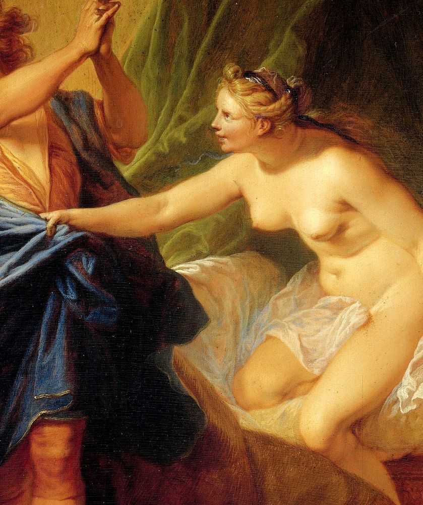 Joseph and Potiphar's wife, Nicolas Bertin, 1690 - 1710 oil on panel, h 38,5cm × w 32,4cm × d 1,5cm