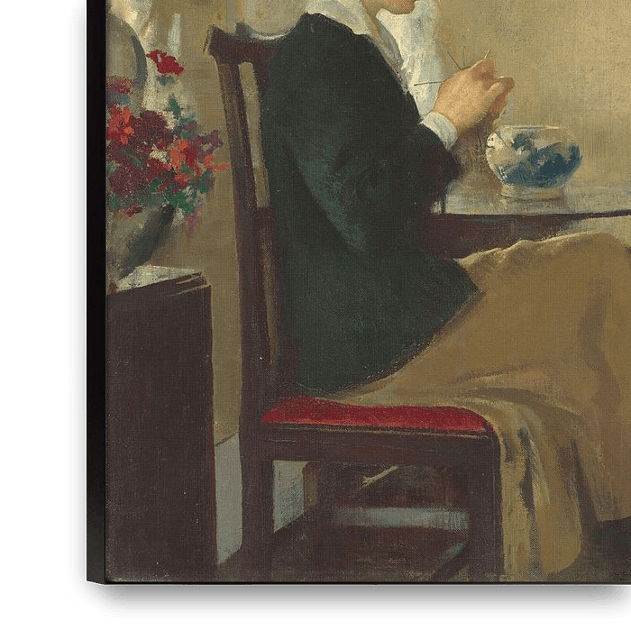 Buy Josephine Knitting, Edmund Tarbell as a reproduction on canvas, ArtFrame, poster and wallpaper, printed on demand in high quality.