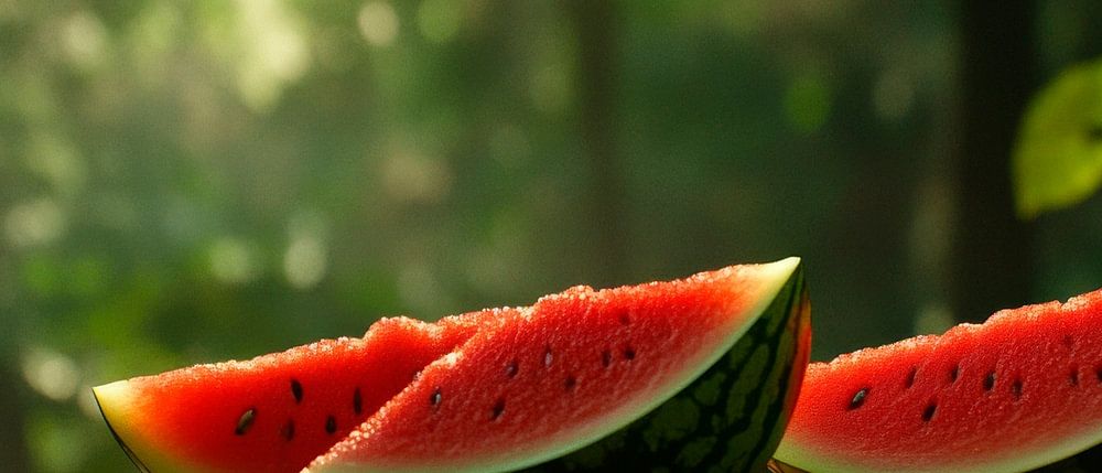 Fresh, juicy melon slices shine in a vibrant red colour and invite you to enjoy them. Surrounded by the mystical green of the forest, this picture creates a feeling of summer and naturalness. Ideal for the kitchen, it creates an inviting atmosphere and whets the appetite for delicious refreshments.