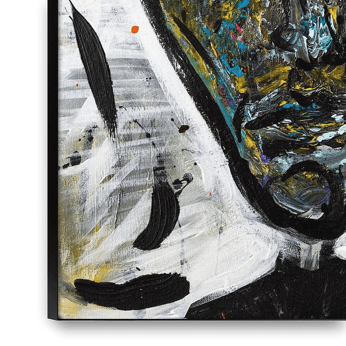 This artwork represents an expressive and abstract interpretation of the former night mayor of Rotterdam, Jules Deelder. The use of bright colours and dynamic brushstrokes gives an energetic and modern look. Abstract art often invites reflection and personal interpretation.