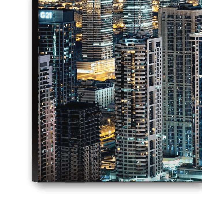 A stunning skyline of tall skyscrapers separated by the Sheikh Zayed road, the most busy highway running right through Dubai. The tall building in the middle is where Dubai's diamond trade is conducted.