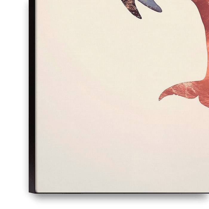 Elegant elegance in soft pastel colours, with a dolphin whose body reflects a dreamlike landscape. This artful depiction captures the freedom and beauty of nature and conveys a sense of calm. Ideal for the living room or a relaxing corner in the office, where it can gently transport your thoughts into the distance.