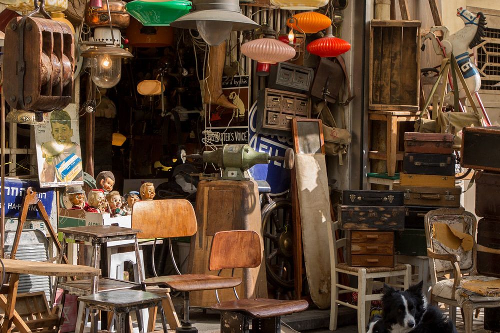 Rummage sale with antiques in old town of Tel-Aiv, Israel