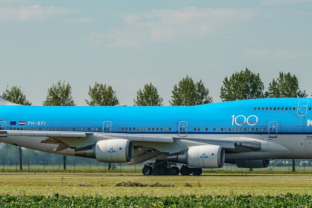 KLM Boeing 747-400 "City of Jakarta (PH-BFI). This KLM Boeing 747-400, the PH-BFI, which bears the name "City of Jakarta", taxies via taxiway Victor to Polderbaan for take-off moments later. This photo was taken on 14 April 2019 along Zwanenburgbaan.