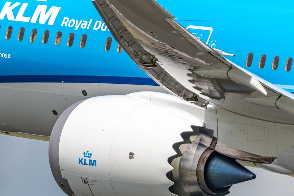 KLM Boeing 787 "Mimosa" (PH-BHG) took off from Polderbaan.
