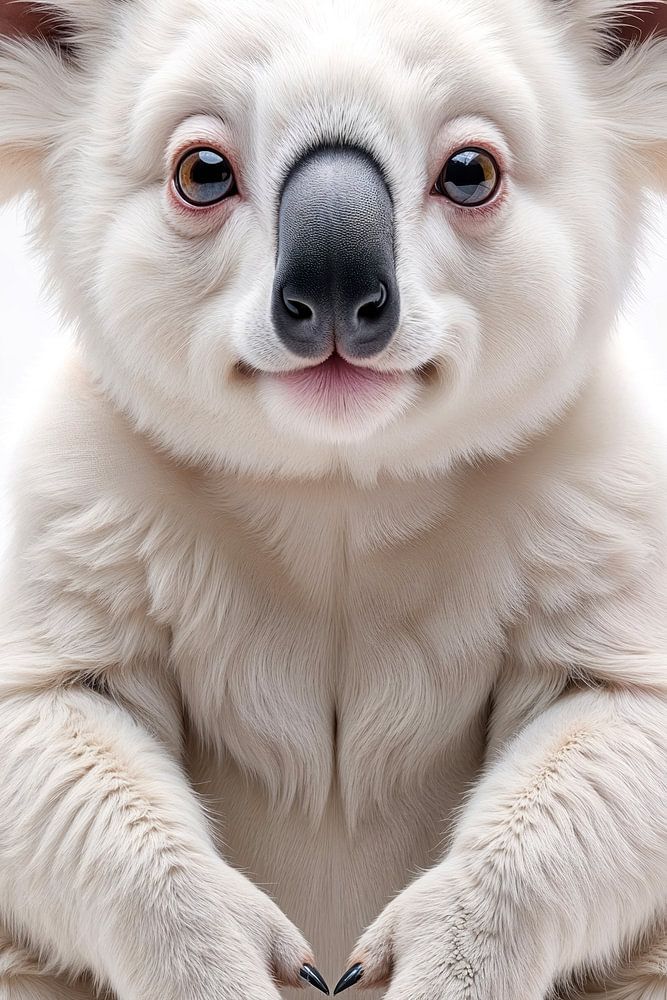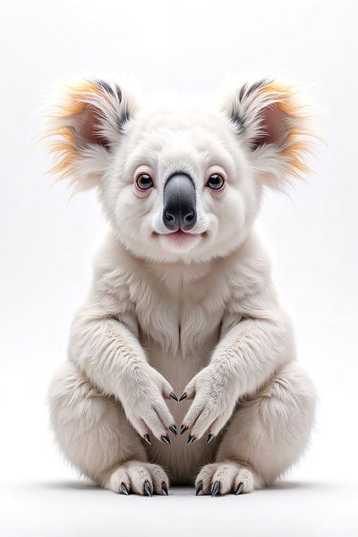 In perfect stillness, the presence of this koala unfolds within an endless white space, as if shaped from both light and silence. Its soft fur appears almost weightless, interwoven with delicate golden accents that trace its contours with a subtle glow. The large, gentle eyes hold a quiet awareness, while every line and texture radiates…