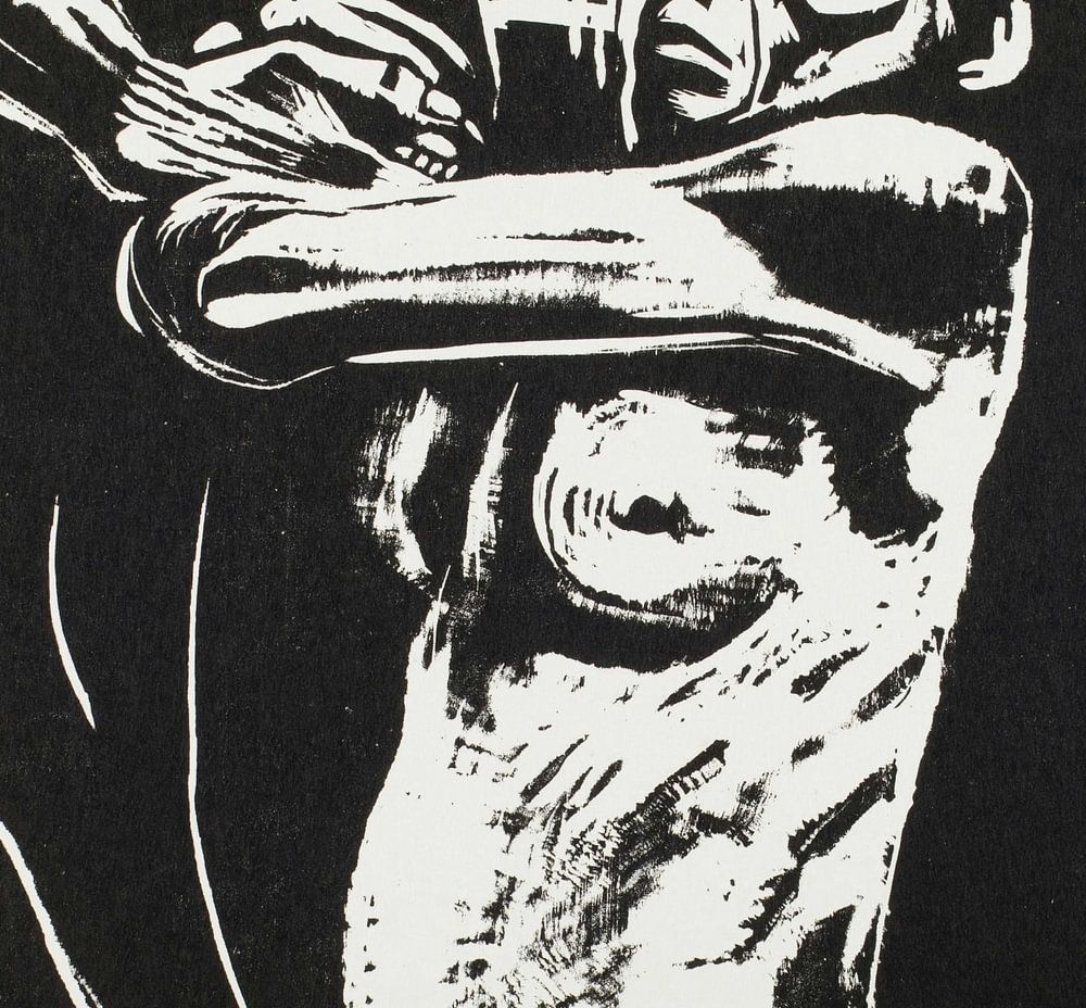The work "Das Opfer" (The Sacrificial God) from the series "Krieg" (War) by Käthe Kollwitz is a powerful and poignant woodcut showing the gruesome consequences of war. In this woodcut, we see a woman, probably a mother, holding her child, a young soldier, in a final embrace before going to war. The faces of both the mother and child express intense emotions, from fear and sadness to despair and love.