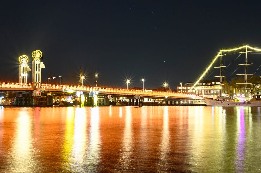 City Bridge and New tower illuminated in orange color for International Day for the Elimination of Violence against Women in Kampen, Overijssel, The Netherlands on November 25. The United Nations wants to raise awareness of the position of women around the world who subject to domestic violence, rape and other forms of violence.