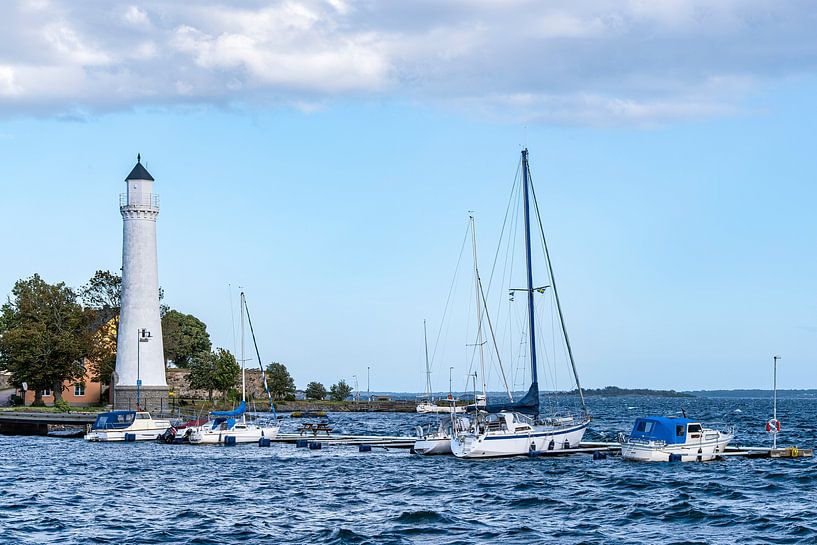 Maritime view of Sturmholmen Island and the front light, Karlskrona Nedre Lighthouse, Blekinge County, Sweden.