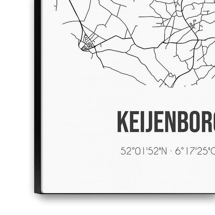 Black and white map, street map or street plan of Keijenborg. Keijenborg is located in the Achterhoek region, in the municipality of Bronckhorst, province of Gelderland. On the city map all public roads in Keijenborg are included. Furthermore, the map is provided with the coordinates of the center of Keijenborg.