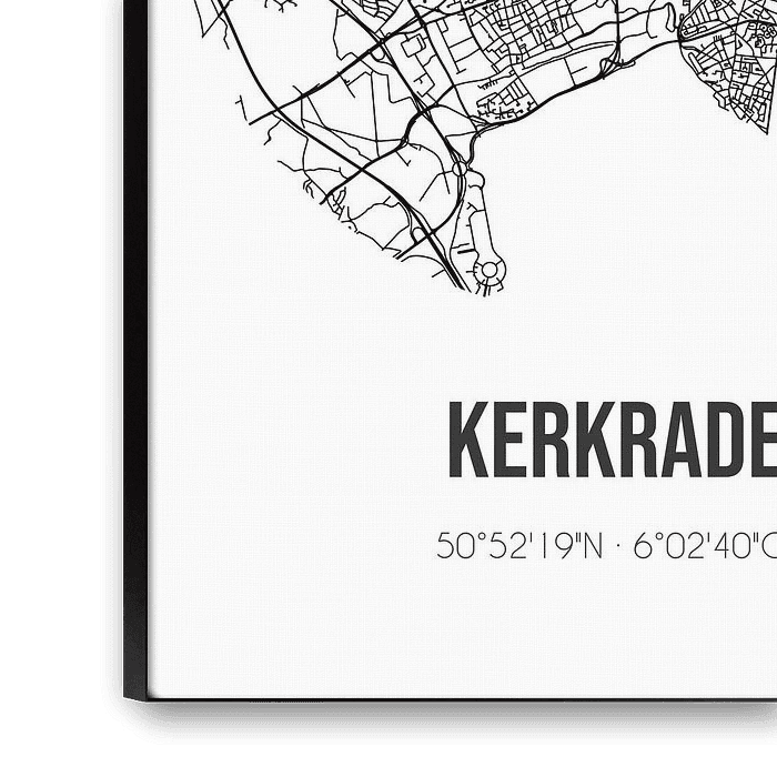 Black and white map, street map or street plan of Kerkrade. Kerkrade is located in the municipality of Kerkrade, province of Limburg. On the city map all public roads in Kerkrade are included. Furthermore, the map is provided with the coordinates of the center of Kerkrade.