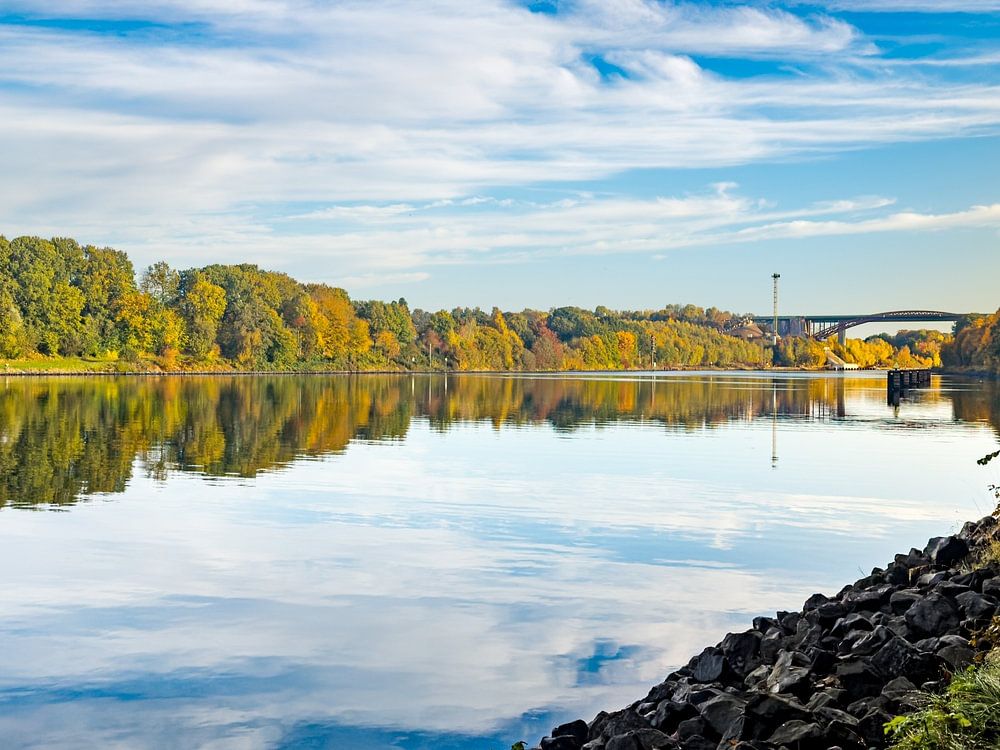 Autumn near Kiel on the Kiel Canal in Schleswig-Holstein, Germany.
