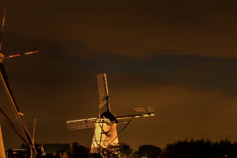 Verlichte Molens Kinderdijk gefotografeerd in de week van de verlichting Kinderdijk