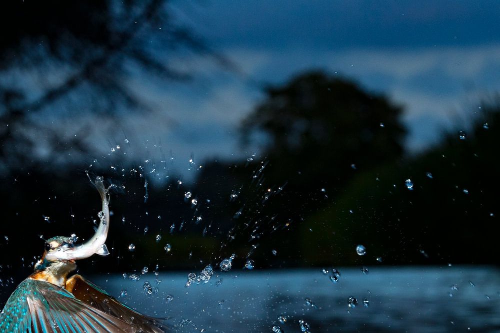 Kingfisher photographed in the ThrowJeroen Stel Kingfisher flies up with preyJeroen Stel
