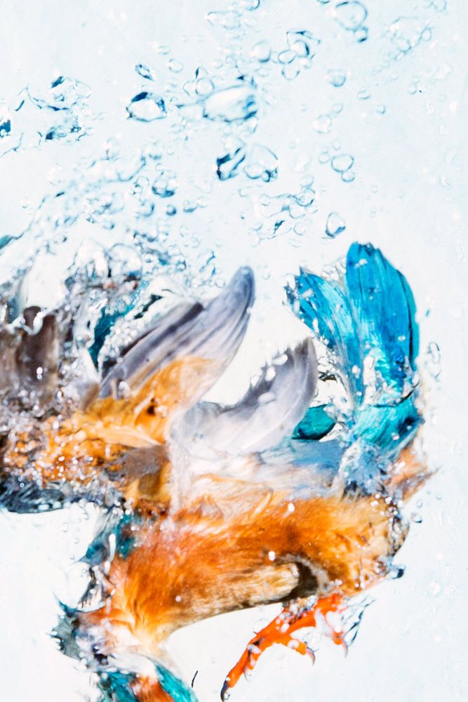 Buy this bird art Kingfisher diving under water by Jeroen Stel on canvas, ArtFrame, poster and wallpaper, printed on demand in high quality.