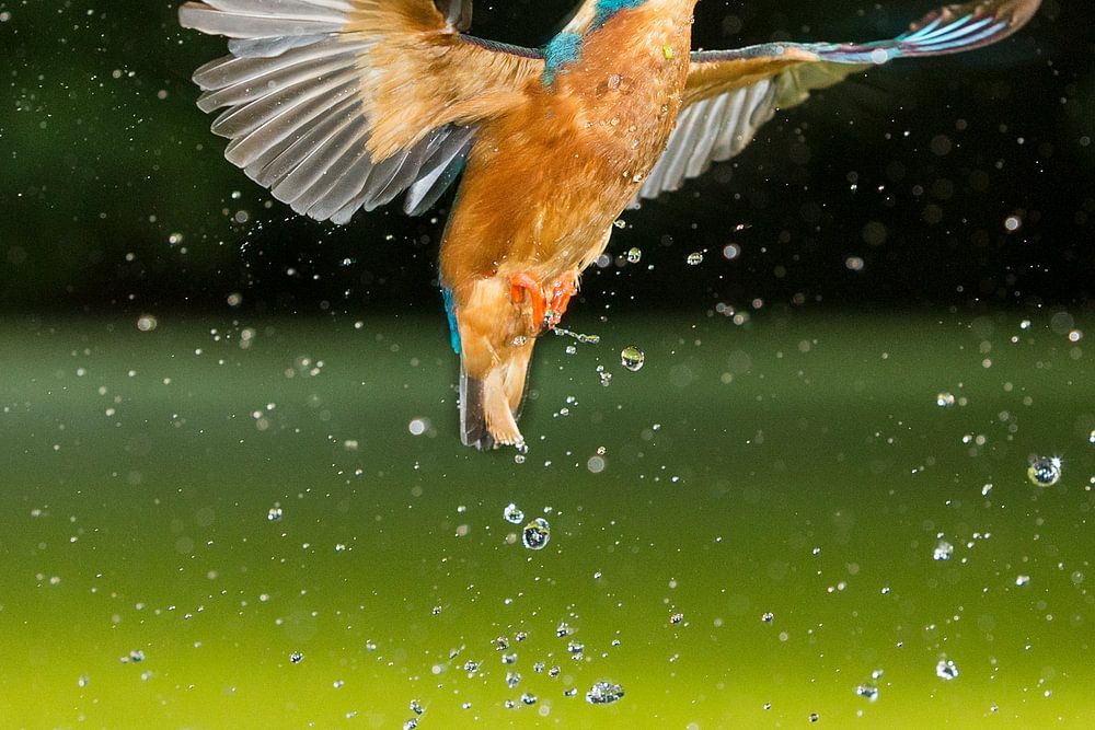Kingfisher flies up with prey by Jeroen Stel