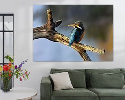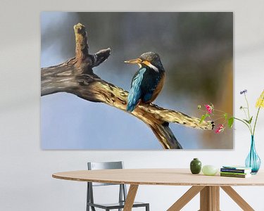 They are very shy, but this digitally painted kingfisher won't fly away.