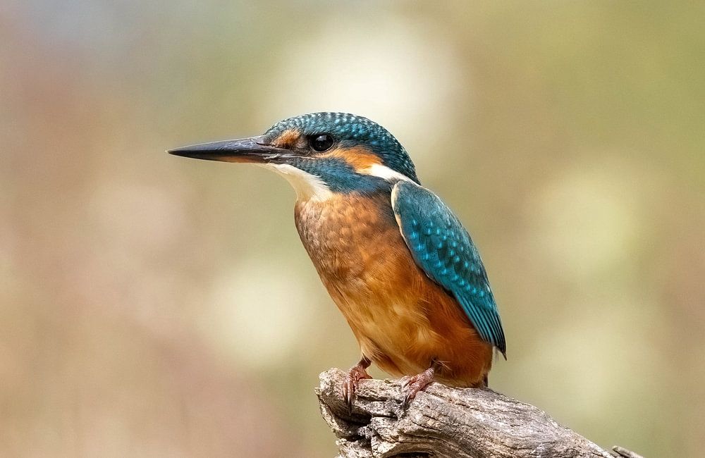 De ijsvogel zit te wachten op een lekker stukje vis.