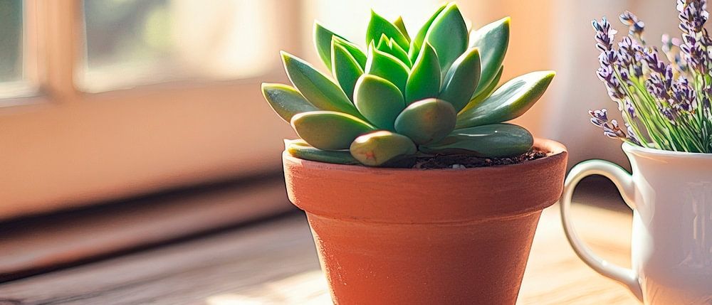 A gentle ray of light kisses the delicate leaves of the succulent and the beguiling lavender blossoming in a fine cup. This harmonious composition brings freshness and life to any room, especially the kitchen or living room, where it creates a calming, inviting atmosphere. A real eye-catcher for nature lovers!
