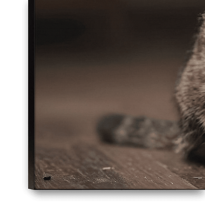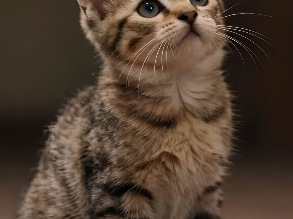 This charming portrait depicts a young kitten with large, curious eyes. The soft lighting highlights the fine texture of its fur and creates a warm, inviting atmosphere. The minimalist background draws the viewer’s attention entirely to the animal, strengthening the emotional connection with the viewer. The piece combines realism with a…