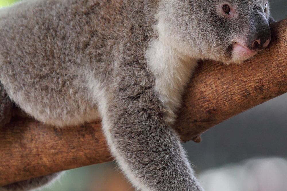 Koala (Phascolarctos cinereus) resting on a branch in Queensland, Australia.