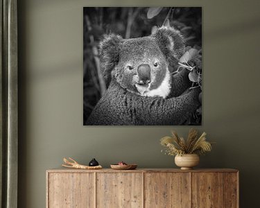 Buy this portrait Koala eats leaf by Frans Lemmens on canvas, ArtFrame, poster and wallpaper, printed on demand in high quality.