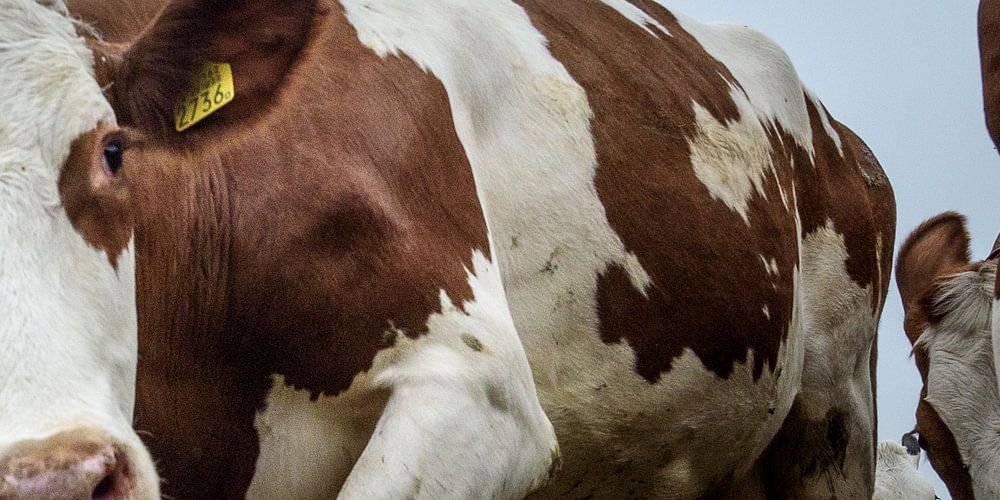 nieuwsgierige koe is net weer vrij uit de stal. In april mogen ze weer naar buiten. Voelen zich vrij buiten.