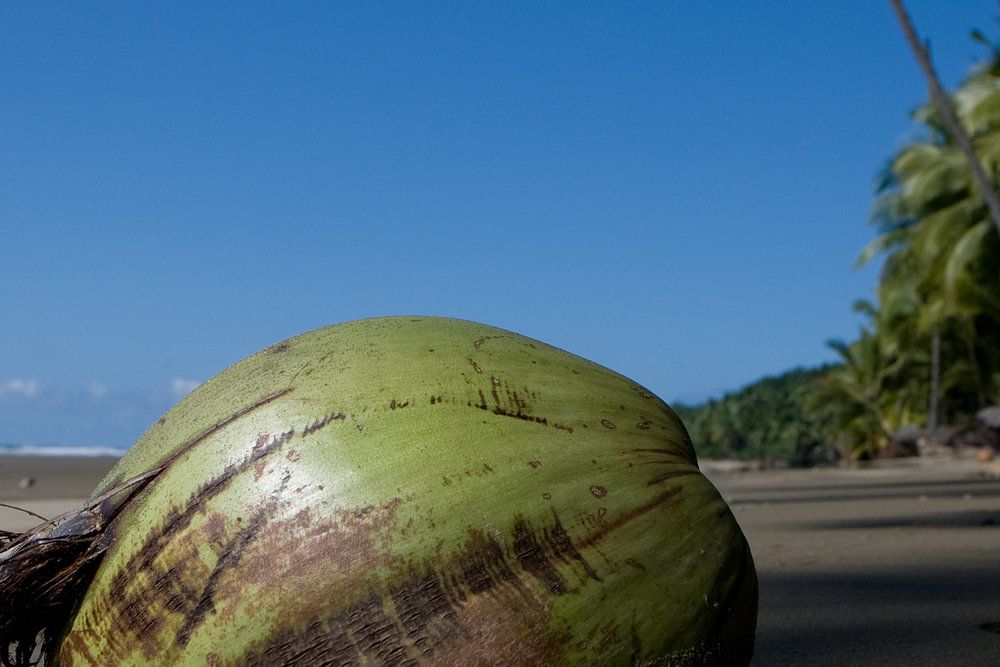 kokosnoot op het strand in Costa Rica.