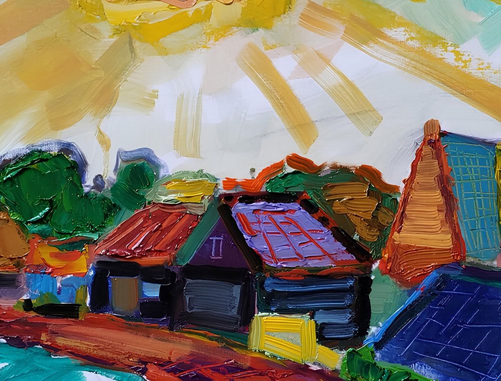 Lightly abstracted colourful work in oil paint... Read more…
