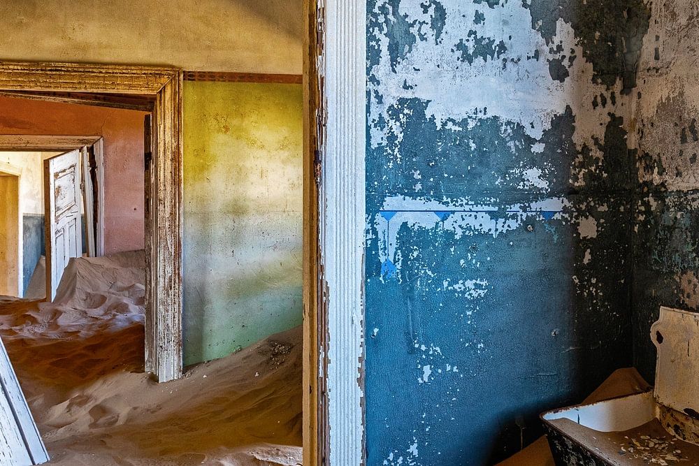 Kolmanskop is a ghost town in the Namib Desert in southern Namibia. It was once a small but prosperous, rich mining town due to the large finds of diamonds.
