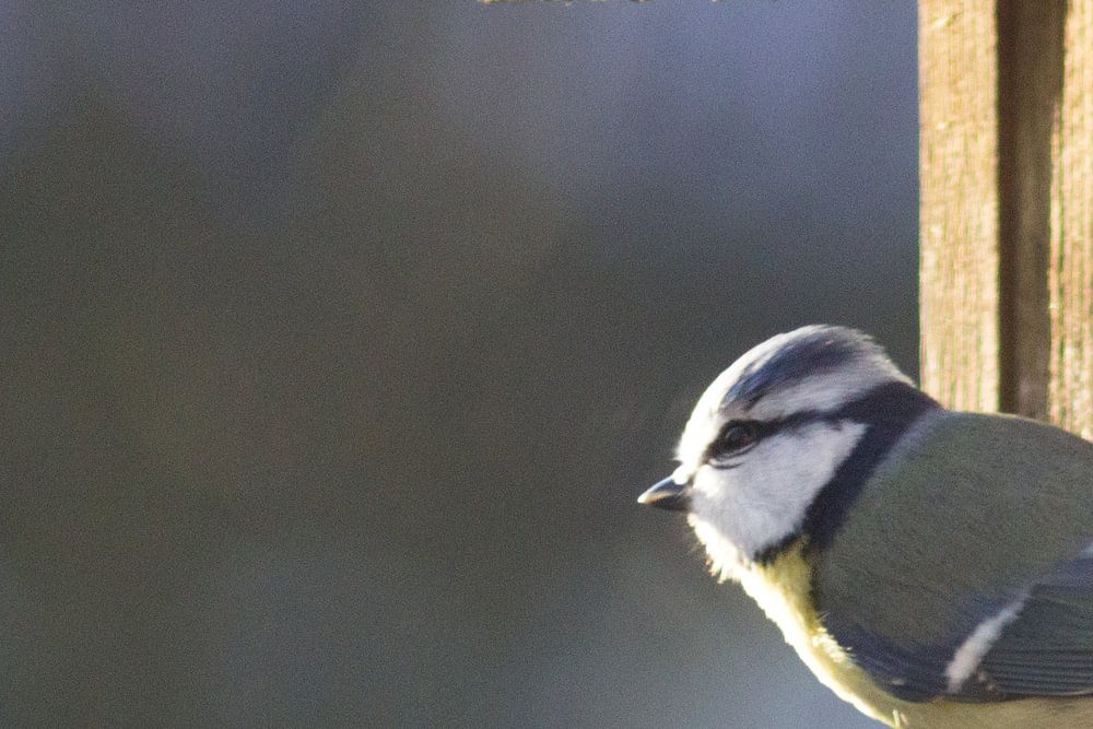 De sneeuw ligt nog op het dak. De koolmees baadt in het licht van de zon, wachtend op wat gaat komen.