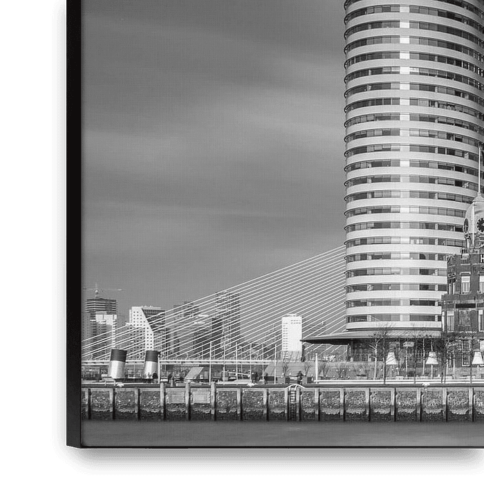 Black-and-white shot of the head of south in rotterdam with a long shutter speed.