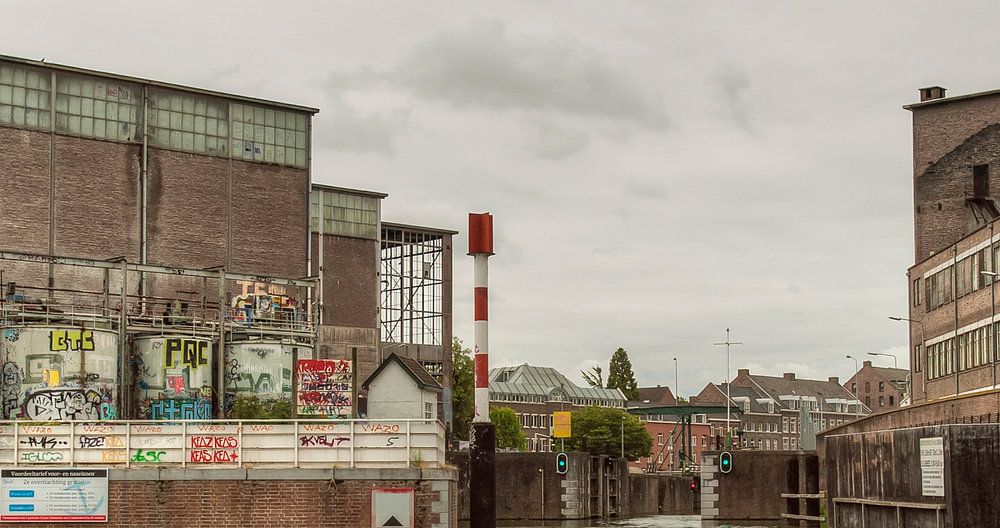 Kraakpand Landbouwbelang in Maastricht gezien vanaf het water