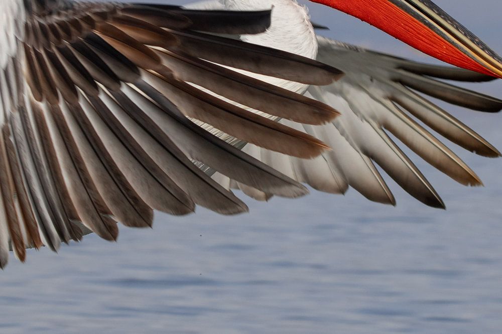 A flying crucifixion pelican over Lake Kerkini in Greece