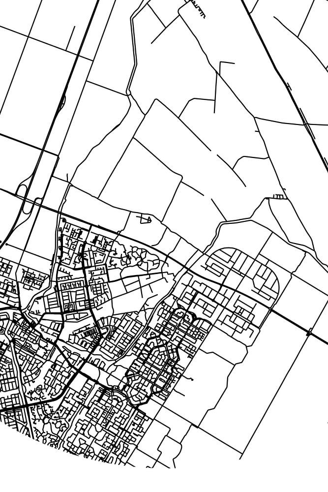 Black and white map, street map or street plan of Kwadijk. Kwadijk is located in the municipality of Edam-Volendam, province of North Holland. On the city map all public roads in Kwadijk are included. Furthermore, the map is provided with the coordinates of the center of Kwadijk.