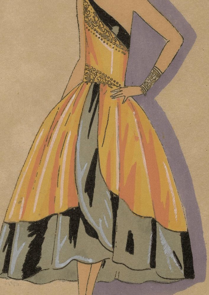 A historical fashion print in a modern twist. Inspired by Art Deco, a style movement that emerged in the 1920s. New practicality mixed with modern clean lines and colours.