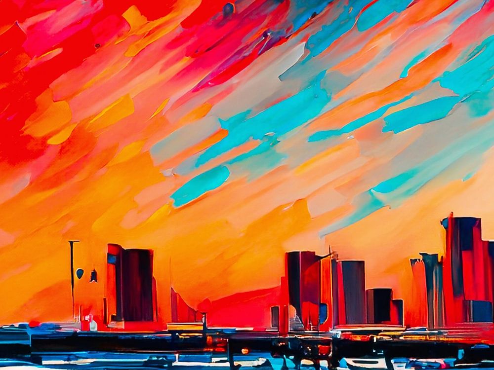 Buy this painting LA Beach and Skyline by Mustafa Kurnaz as a reproduction on canvas, ArtFrame, poster and wallpaper, printed on demand in high quality.