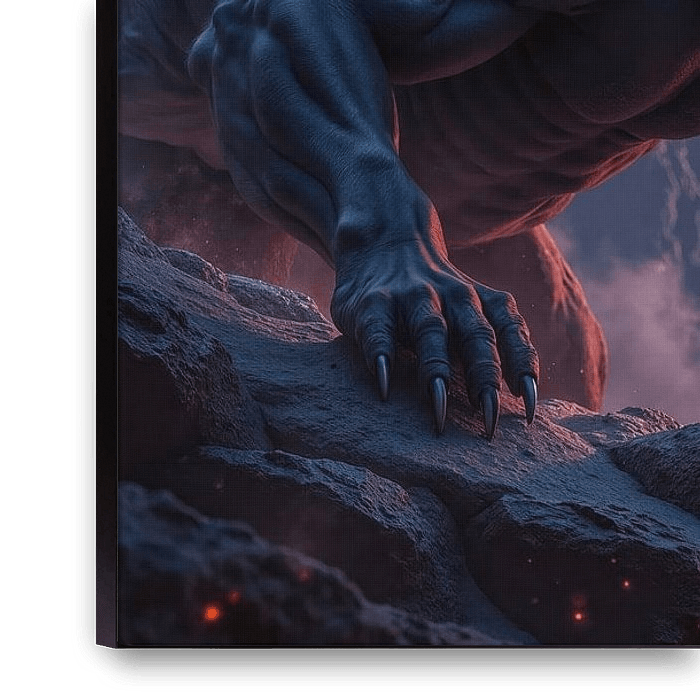 Buy this digital art artwork LUNAKRYSS - Two werewolves in a duel beneath the blood moon by INFERAURUM as a reproduction on canvas, ArtFrame, poster and wallpaper, printed on demand in high quality.