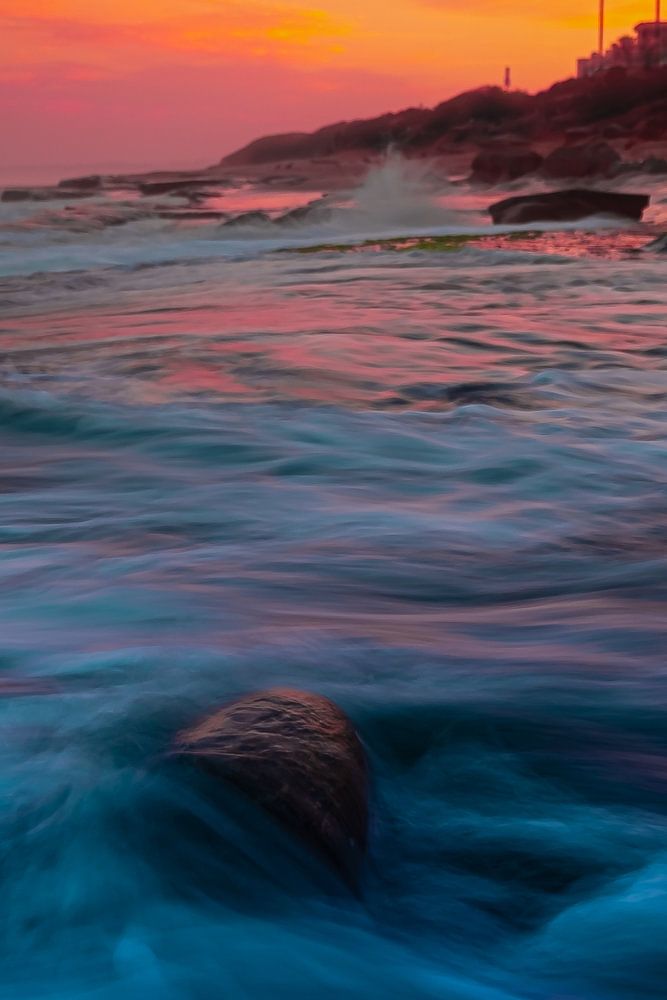 At La Jolla, California, the sunrise unfurls a breathtaking symphony of colors. The long exposure captures the gentle dance of the waves, blending the sea’s cool hues with the warm, golden pigments of the morning. This harmonious interplay creates a mesmerizing mosaic of textures and tones under the awakening sky—a true masterpiece of nature’s artistry."