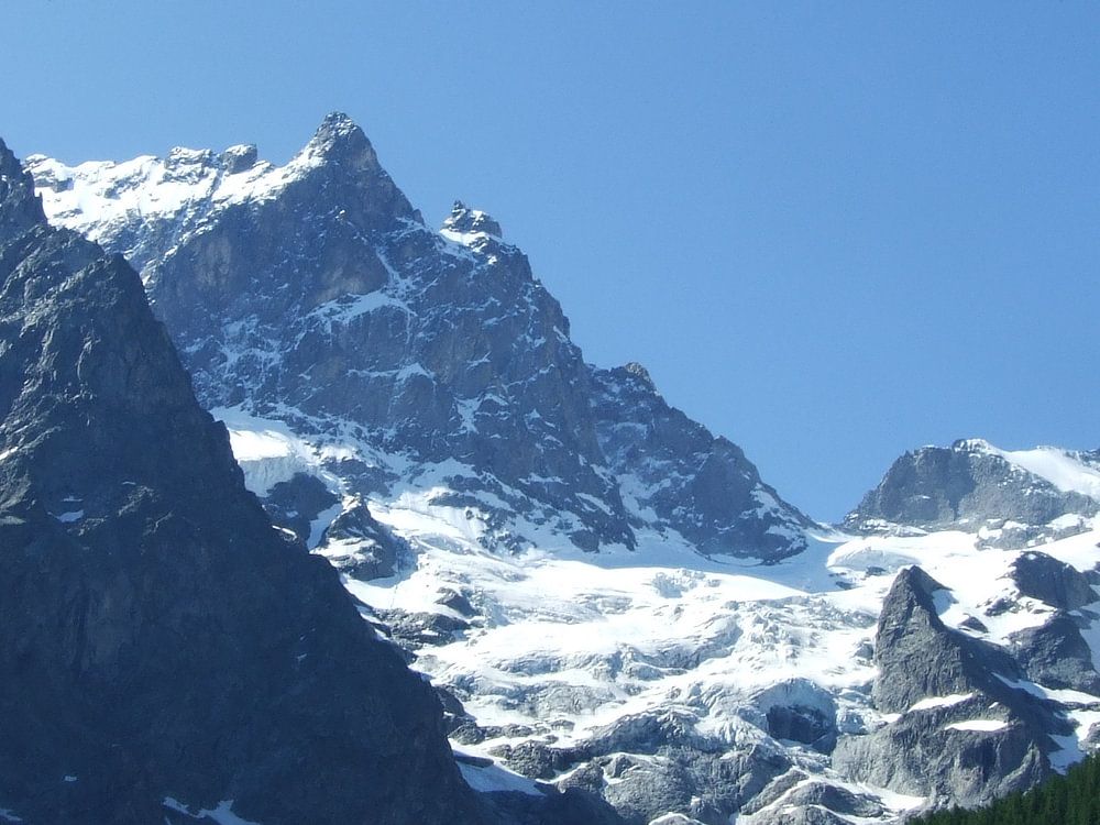 La Meije-La Grave (3984 meter hoog) is een van mooiste bergtoppen die ik gezien heb. Bovenop is een uitgestrekte gletsjer en een ijsgrot met ijssculpturen. Het ligt midden in het massief des ecrins (Frankrijk).