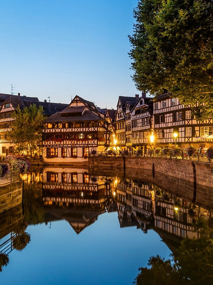 La Petite France with the Place Benjamin Zix in Strasbourg at night.