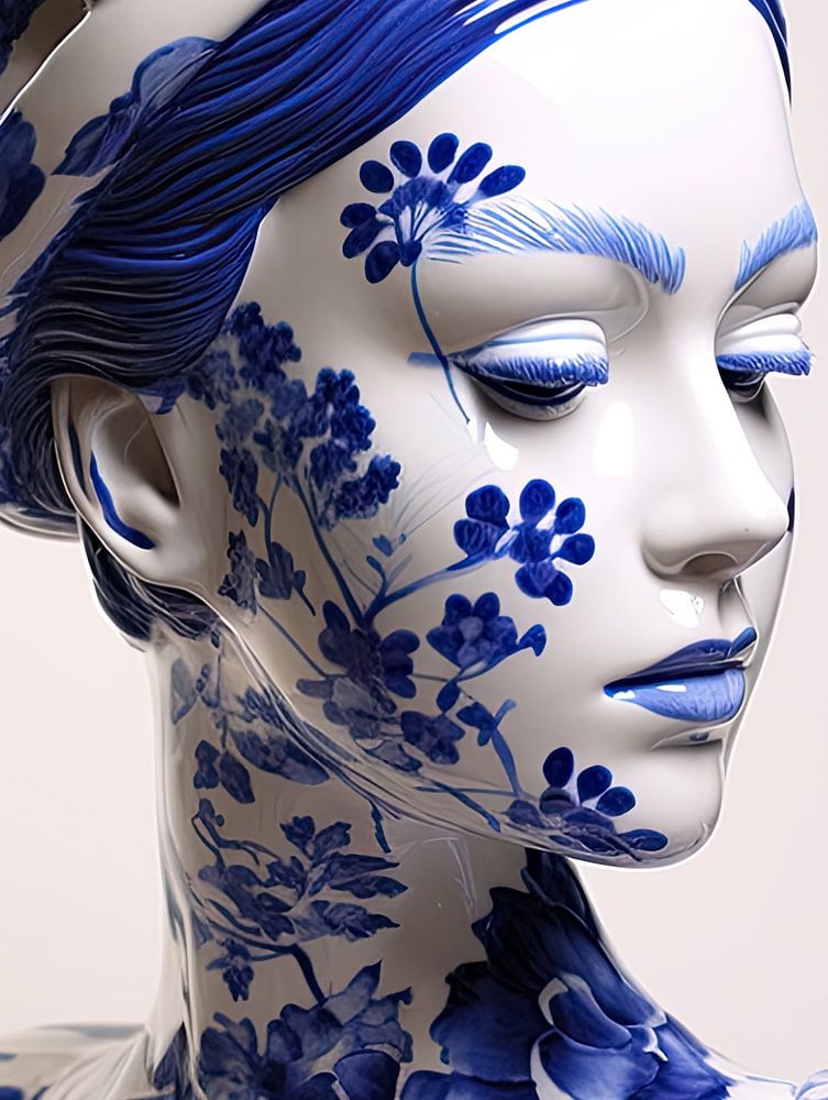 Buy this portrait Lady in delft blue by Bert Nijholt on canvas, ArtFrame, poster and wallpaper, printed on demand in high quality.