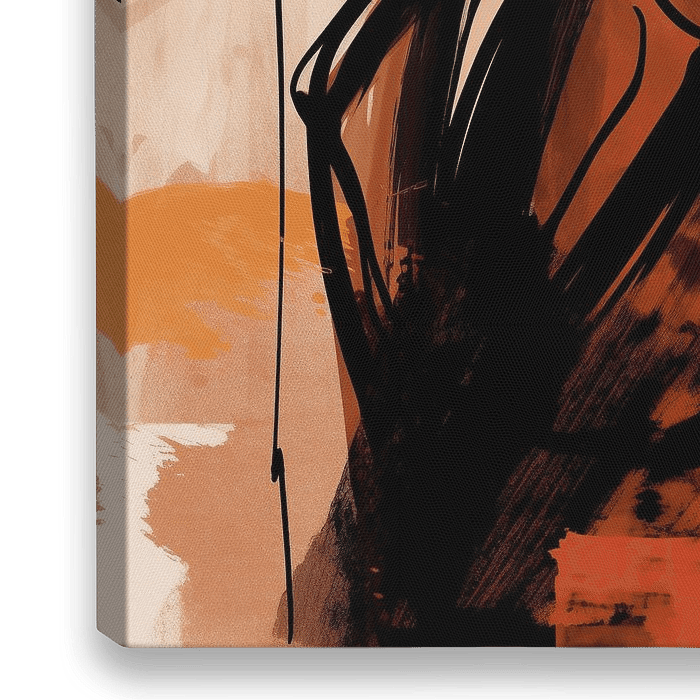 Lady with Hat | Modern Portrait - This stylish painting portrays a person in an oversized hat, using a limited colour palette consisting mainly of shades of red and brown. The expressive brushstrokes and abstraction add a modern touch, while the prominent hat and silhouette exude a sense of mystery and elegance.